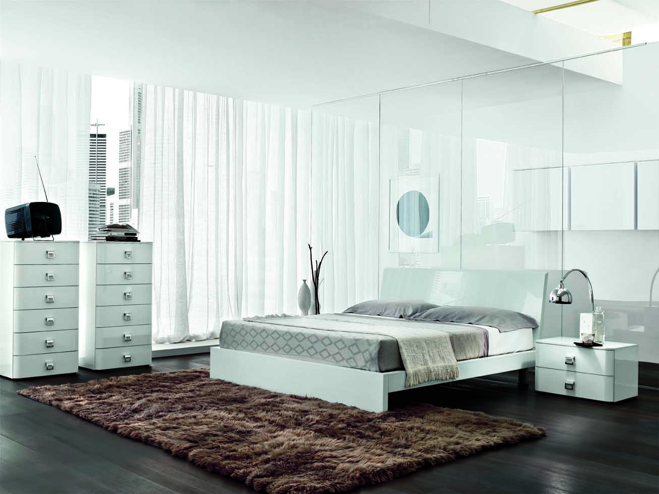 Headsets for bedrooms from Italian manufacturer Santa Lucia. Set includes double bed, two bedside tables and two chest of drawers. Frames made from solid wood. Bed legs made of metal. Offered lacquer finish in white. Drawers complemented with curly handles. Headsets are made in a modern style.