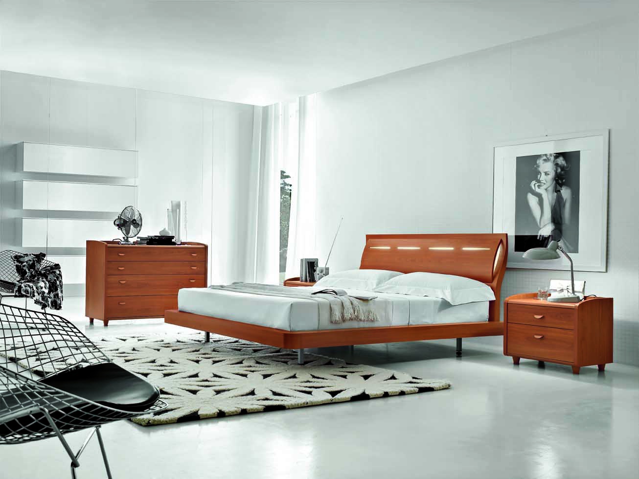 Headsets for bedrooms from Italian manufacturer Santa Lucia. Includes double bed, chest of drawers and bedside tables with drawers. Models made from solid wood. Legs in chromed metal. Surfaces treated with varnish from the company portfolio. Set is manufactured in contemporary style.