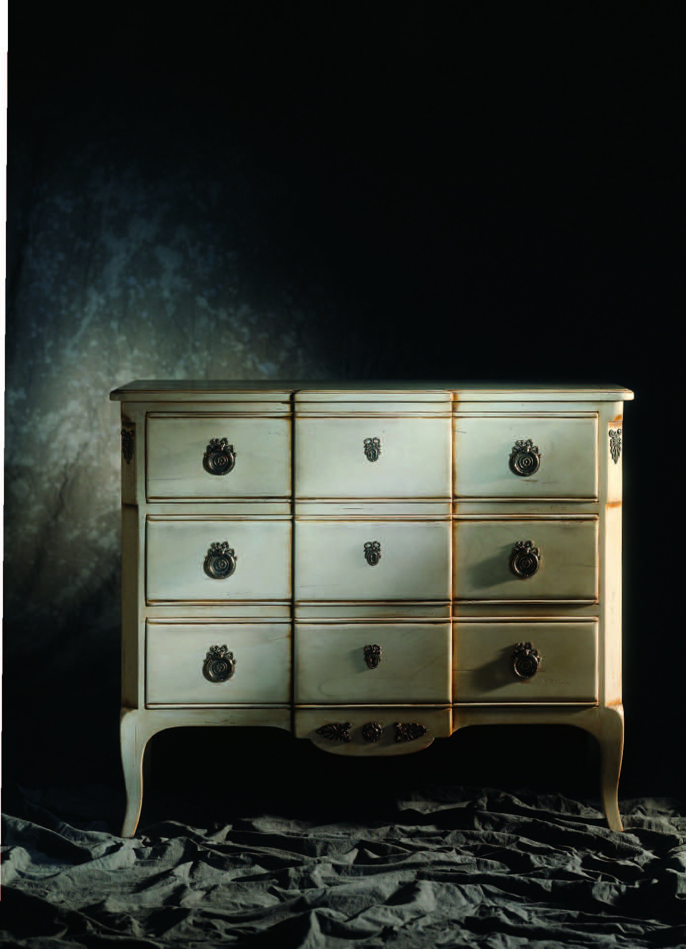 A chest of drawers from Italian manufacturer Stella Del Mobile. Dresser on elegant curly legs, made in a classic style. Model with drawers of different depth. The material is solid wood of valuable breeds.