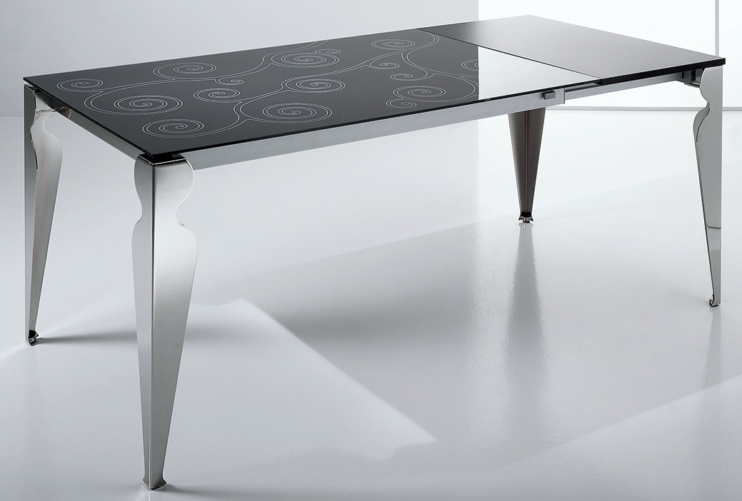 Dining table from the Italian manufacturer Torchetti. The model is made in modern style. Legs are figured, the shape and the frame is made of metal. Countertop rectangular shapes of glass. Colors to choose from a range of companies. The model is supplemented with a retractable top. Original design and practicality.