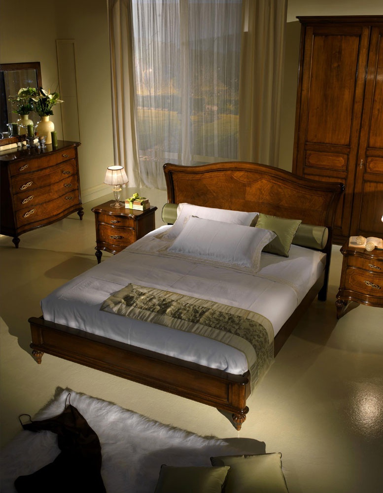 Double bed from Italian manufacturer Zilio. The model is made in classic style. The frame is made from solid wood. The surface is treated with glossy varnish. Upholstery textile to choose from a range of companies. In addition offers decorative pillows and cushions of various sizes. The model will perfectly fit the interior of your home.