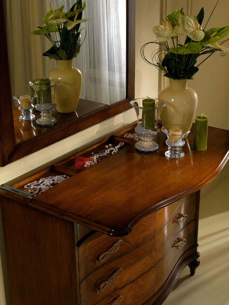 A chest of drawers from Italian manufacturer Zilio. The model includes four drawers. The frame is made from solid wood. Finish - gloss lacquer. A feature model attached to a retractable top with a plurality of cells for storage. Decorative handles made of metal. Made chest in a classic style.