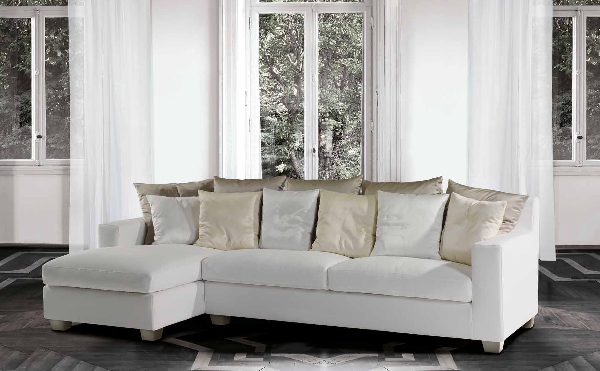 The sectional sofa from Italian manufacturer Treci Salotti. Upholstery - leather or textiles from a range of campaigns. The sofa is suitable for living room in modern style. The model is supplemented with decorative pillows. Colours in stock.
