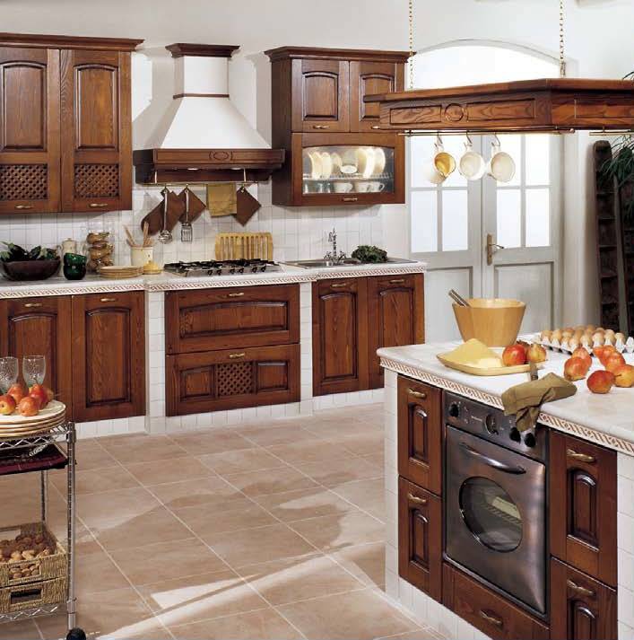 Set for the kitchen by Italian manufacturer Stosa. Set in a classic style. Material - solid wood. The finish offers a matte varnish. Stainless steel fittings. The working surface can be covered with marble, granite or metal. Fold the two kinds of glass and blind. Different practicality, elegance and durability.