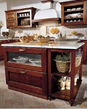 Set for the kitchen by Italian manufacturer Stosa. Set in a classic style. The furniture is made of solid wood. Finishes: marble, laminate, steel or glass. Fold - frosted glass. Handles - metal. Finishing varnish from the range of the campaign. Set with built-in backlight. Product color natural wood.