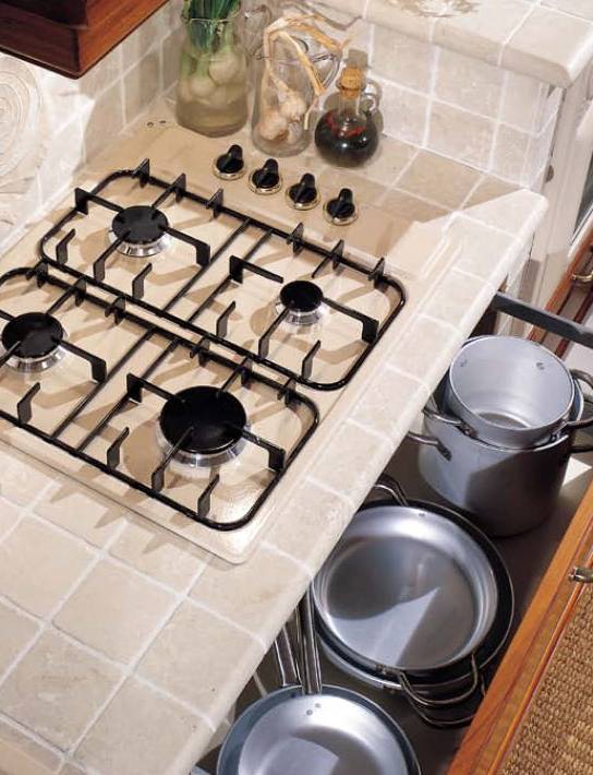 Set for the kitchen by Italian manufacturer Stosa. Set in a classic style. The furniture is made of solid wood. Finishes: marble, laminate, steel or glass. Fold - frosted glass. Handles - metal. Finishing varnish from the range of the campaign. Set with built-in backlight. Colours in stock.