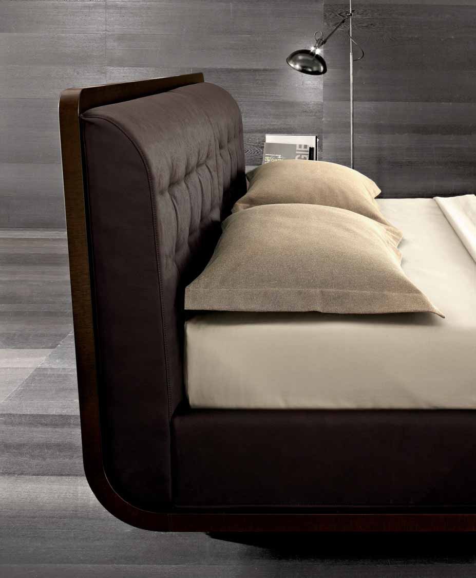 Double bed from Italian manufacturer Zanette. The model is made in a modern style. Material - solid wood. Frame and headboard upholstered in leather. Color range for selection by the customer. Upholstered headboard with decorative stitch-Capito.