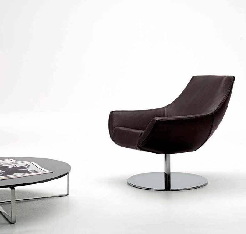 A chair from the Italian manufacturer Desiree. The model is made in modern style. A sofa with a low back transforms into armrests. The base is available in two versions-round or four-rayed. Material - metal. Back and seat are covered with skin. Color option - black or brown.
