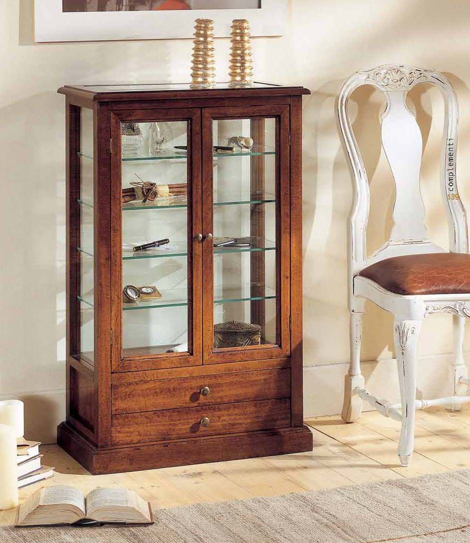Showcase from Italian manufacturer Villanova. The frame is made from solid wood, doors and shelves glass. Handles - metal. Finishing varnish from the range of the campaign. The model is designed for the living room in a classic style. Product color natural wood.