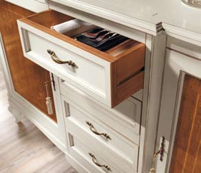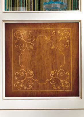 frame: natural wood shutters, shelves: glass accessories: metal finish: lacquered decor: inlay |