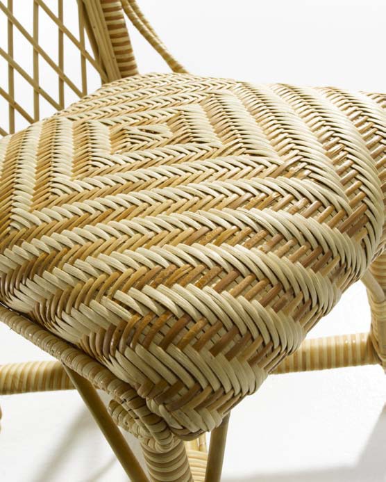 Chair Brando bicolor by Italian manufacturer Vittorio Bonacina. The frame is made of rattan. Gorgeous model will decorate a terrace or outdoor furniture. Product color natural wood.