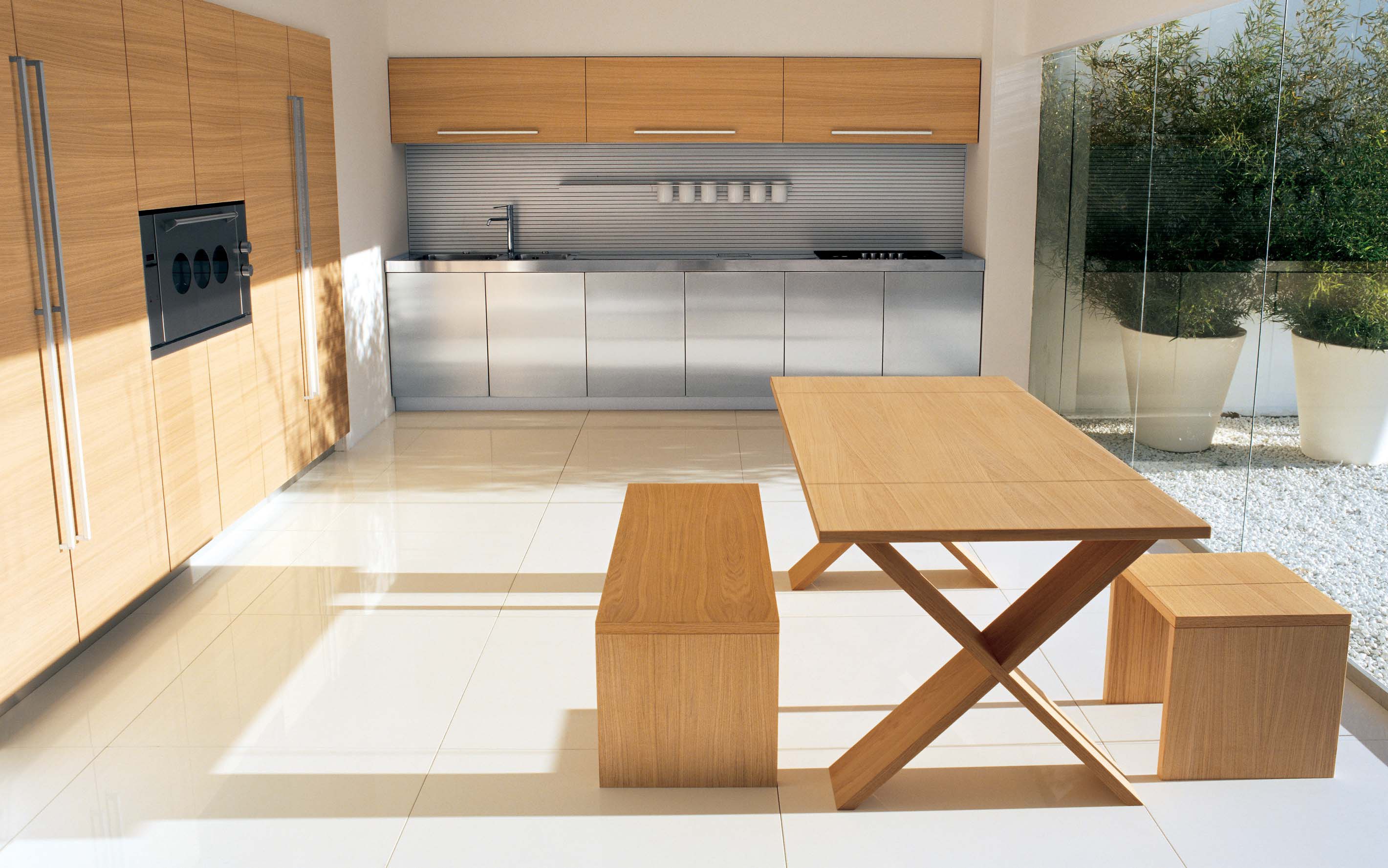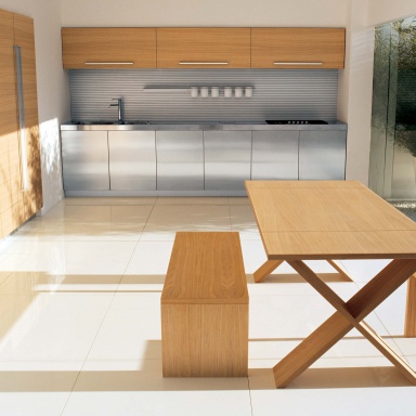 Set for the kitchen from Italian manufacturer Schiffini. The model is fully made of solid wood. Work surface and stainless steel handles. The finishing - varnish. The color palette to choose from the catalogue of the factory. Made in a modern style.