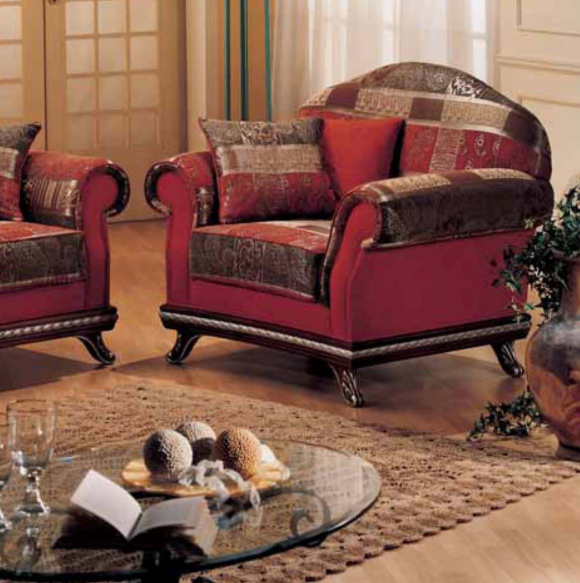 Armchair in fabric Italian manufacturer Linea Due. Model for small feet carried on the frame of wood. Upholstery made of high-quality textiles in the combination of several shades of grey and red. Perfect for modern living.