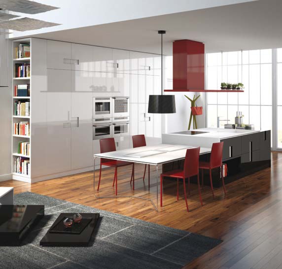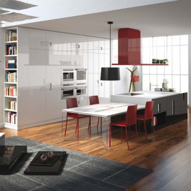 Set for the kitchen Carre from the Italian manufacturer Ernestomeda. The model is made in modern style. Frames made of solid wood. The finish offers a glossy lacquer or veneer. Color option to choose from a collection company. Accessories made of metal. The model perfectly fits and decorate the interior of your home..
