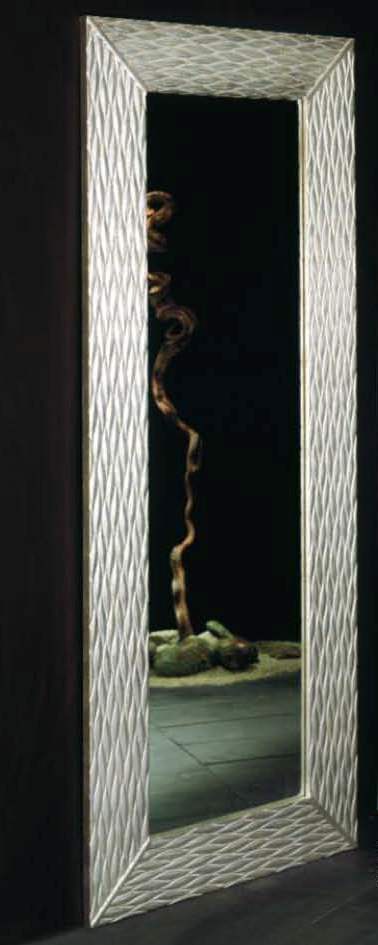 Floor mirror Spini Italian manufacturer. A rectangular frame in silver color is made of natural wood with hand carved. The style is art Deco.