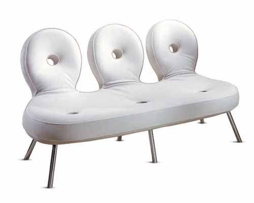 Olo sofa from Italian manufacturer Adrenalina. The legs are made of metal, filler - foam, upholstery - leather or textiles from a range of campaigns. Triple model will decorate the living room in designer style. Colors: white, red, brown.