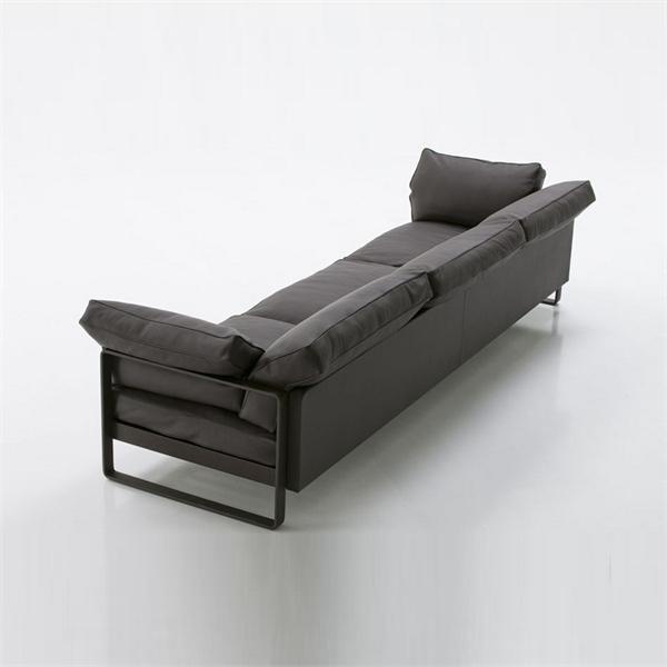 Three seater sofa Phan from the Italian manufacturer Matteograssi. The frame is made of metal. Finish available in black. The frame is completely hidden. Upholstery leather from the catalogue. The elasticity of the seat attach with elastic straps. The seat cushion and backrest filled with foam of different firmness. The armrests are complemented with soft cushions. Made sofa in contemporary style.