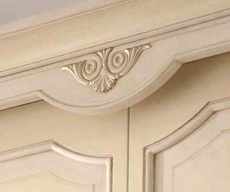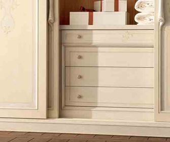 Wardrobe from the Italian manufacturer Benedetti. The model includes four doors with swinging doors. The frame is made from solid wood. Finish option to choose from a range of companies. Metal fittings are offered. The contents - drawers and shelves for storage. Custom closet in classic style.