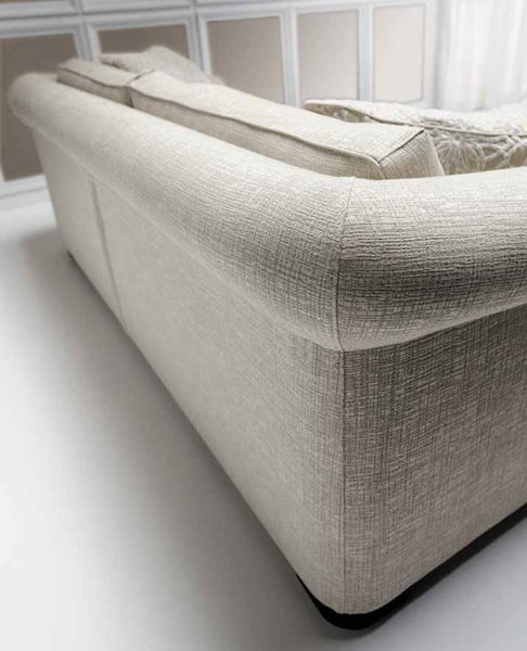 The Alexander sofa from Italian manufacturer Cava. The frame is made of wood. Upholstered in textile or leather from the company portfolio. The design of complementary decorative pillows. Sofa in classic style.
