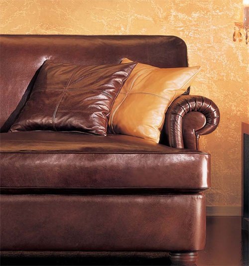 Sofa Boston, Italian producer of Cava. The frame is made of wood. Upholstered in leather from the company portfolio. The design of complementary decorative pillows. The armrests are wrapped. The sofa will perfectly complement the modern interior living room.