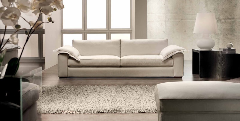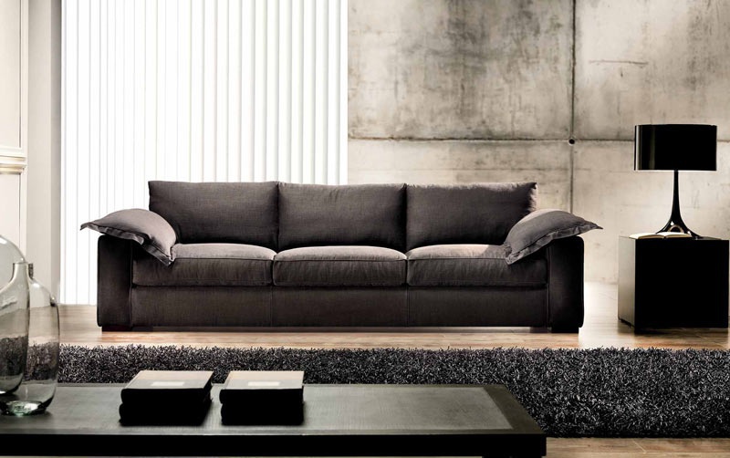 The Blues sofa from Italian manufacturer Cava. The frame is made of wood and steel. Upholstered in textile or leather from the company portfolio. The padding is removable. The design of complementary decorative pads on the armrests.