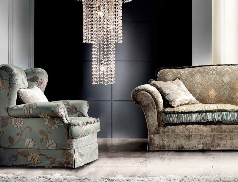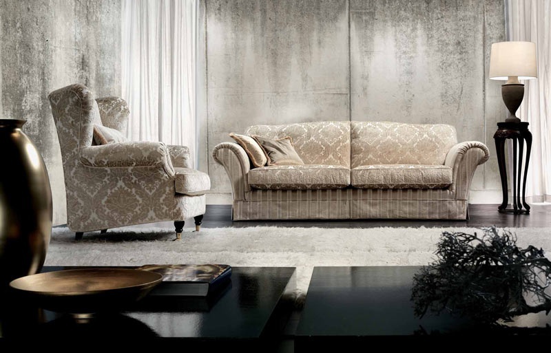 Sofa Don Carlos, the Italian producer of Cava. The frame is made of wood. Upholstery - textiles from the company portfolio. The design of complementary decorative pillows. The armrests are wrapped. Sofa in classic style.