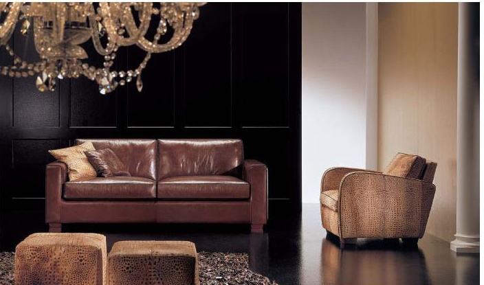Living room (sofa set) from the Italian producer of Cava. Set includes: sofa and chair and Ottomans. Frames made from plywood and steel. Upholstered in soft leather. Set is made in a classic style.