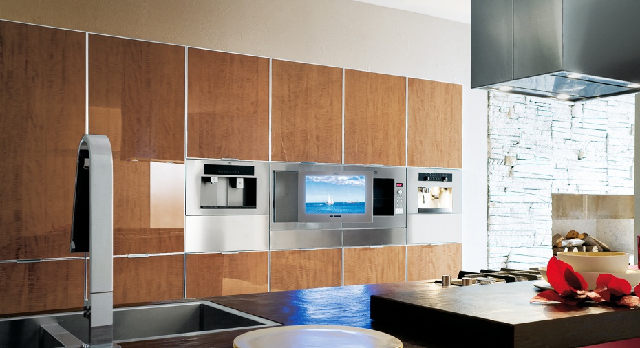 Kitchen with island, the Luxor collection from the Italian manufacturer Zaccariotto Cucine. When designing this kitchen, the basic idea was to create universal modules that fit in the living room. The kitchen is made of solid wood and laminate varieties. The finishing - varnish. The model in the art Nouveau style, colors in stock.
