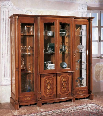 Showcase from Italian manufacturer Stile Elisa. The model is made in classic style. The frame is made from solid wood. Finish - gloss lacquer. The sash and the sides glazed. Internal filling - glass shelves. Swing doors are locked. The feature model gives the rich decor and hand carved.