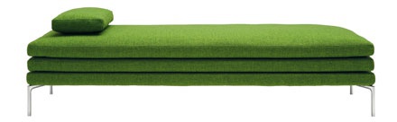 Daybed with legs of polished aluminium alloy from Italian manufacturer Zanotta products. The frame is made of steel. The elasticity of the seat attach with elastic straps. Filler — polyurethane foam and polyester fiber; foam and goose down (only seat cushion). Removable upholstery — fabric or leather from the company portfolio. Colours in stock.
