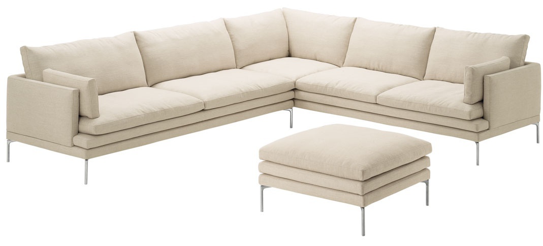 Model sofa from Italian manufacturer Zanotta products. Frame legs made of polished aluminum alloy made of steel. The elasticity of the seat attach with elastic straps. Filler — polyurethane foam and polyester fiber; foam and goose down (seat); goose down (only back cushions). Removable upholstery — fabric or leather from the company portfolio. The furniture will give your home the comfort and coziness. Colours in stock.