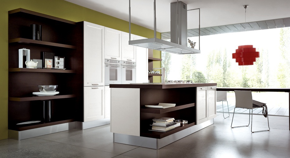 Kitchen with island, the Greta collection from the Italian manufacturer Zaccariotto Cucine. The kitchen is made of solid wood and laminate varieties. Cabinets with internal lighting. The boxes are equipped with system provide silent and smooth closing. Handles and decorative fittings made of steel. Colours in stock.
