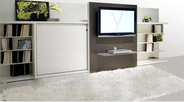 The transformer bed, Clei, Clei Italian view manufacturers. The element TV is moved and the free space turns into a single bed with soft involvem. Colors - white and brown. The model will perfectly complement the modern interior living room.