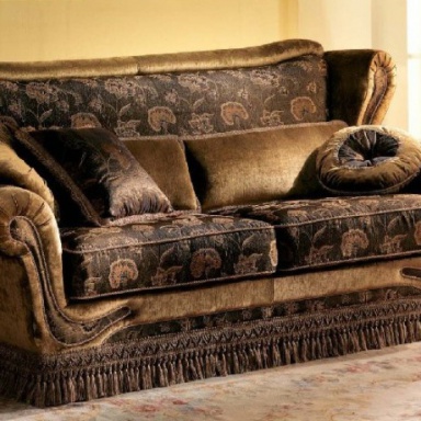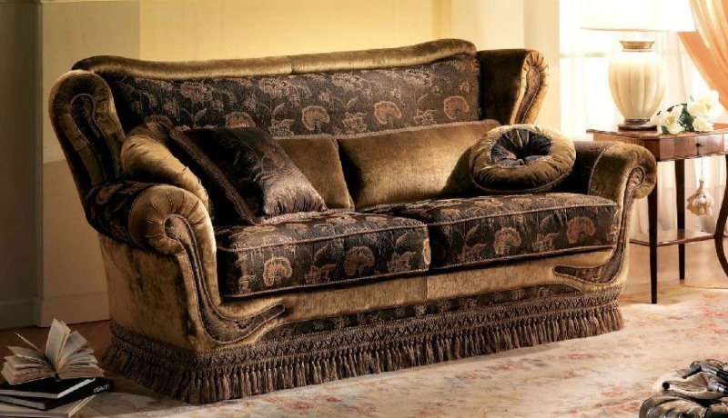Two-seater sofa from Italian manufacturer Elle Salotti. Elegant shape of the backrest and rounded armrests, combination upholstery, decorative pillows. The color and pattern of upholstery You can choose in our office on samples from the manufacturer.