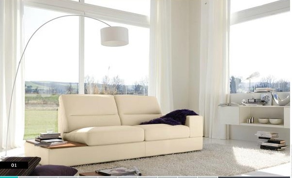 Sofa Bellini, an Italian manufacturer Colombini. The frame is made of wood. Upholstered in leather from the company portfolio. The model is augmented with functional shelf made of wood. The sofa is designed in modern style.
