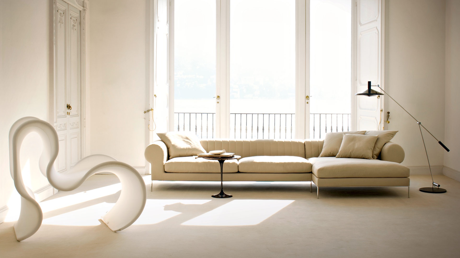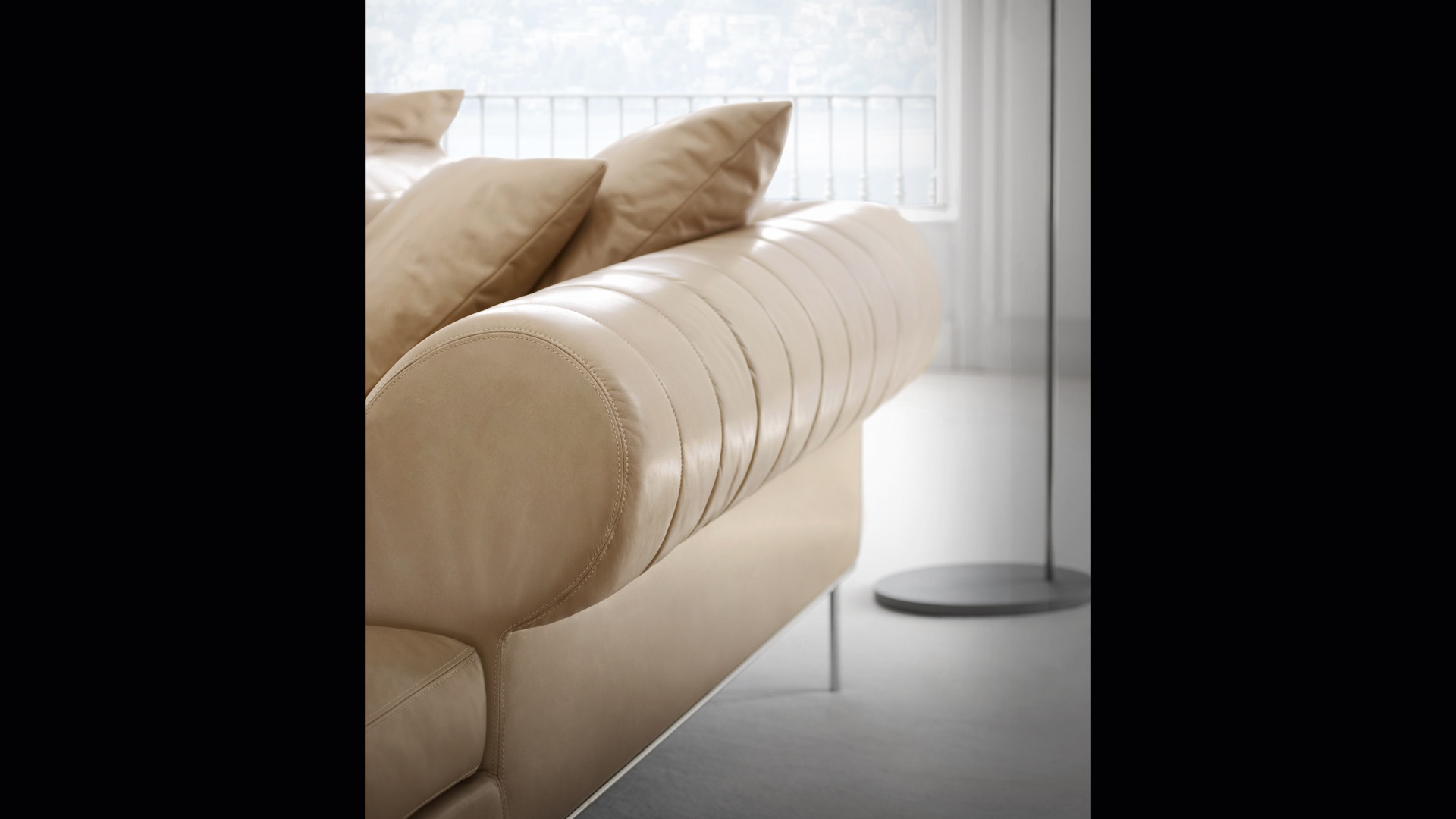 The Deja Vu sofa modular Sofa from Italian manufacturer Busnelli. Model on thin chrome legs and frame. The frame is made of metal and wood. Upholstery choice of fabric or leather. Filler seat cushions 70% goose down, 30% duck feathers and polyurethane foam. The elasticity of the seat attach with elastic straps and springs. In addition offered are decorative pillows of different sizes. Colors offered a choice from a range of companies. A great solution for your living room in modern style.
