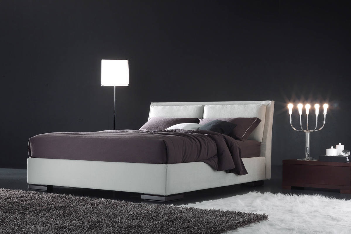 The Athena bed is from Italian manufacturer Axil. The legs are made of metal, the frame is solid wood, filler headboard - polyurethane foam padding - the fabric is from a range of campaigns. Model with a double cushioned headboard. The perfect piece for the bedroom in a minimalist style. Colors: white, brown.
