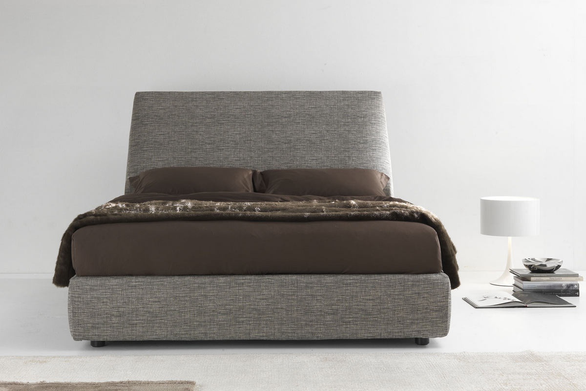 Bed Coat from the Italian manufacturer Axil. the frame is made from solid wood, filler - foam, upholstery - textiles from a range of campaigns. The model is a double high and a cushioned headboard. The product will decorate the bedroom in modern style. Colors: brown, gray.