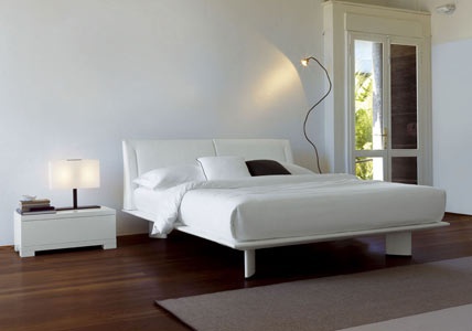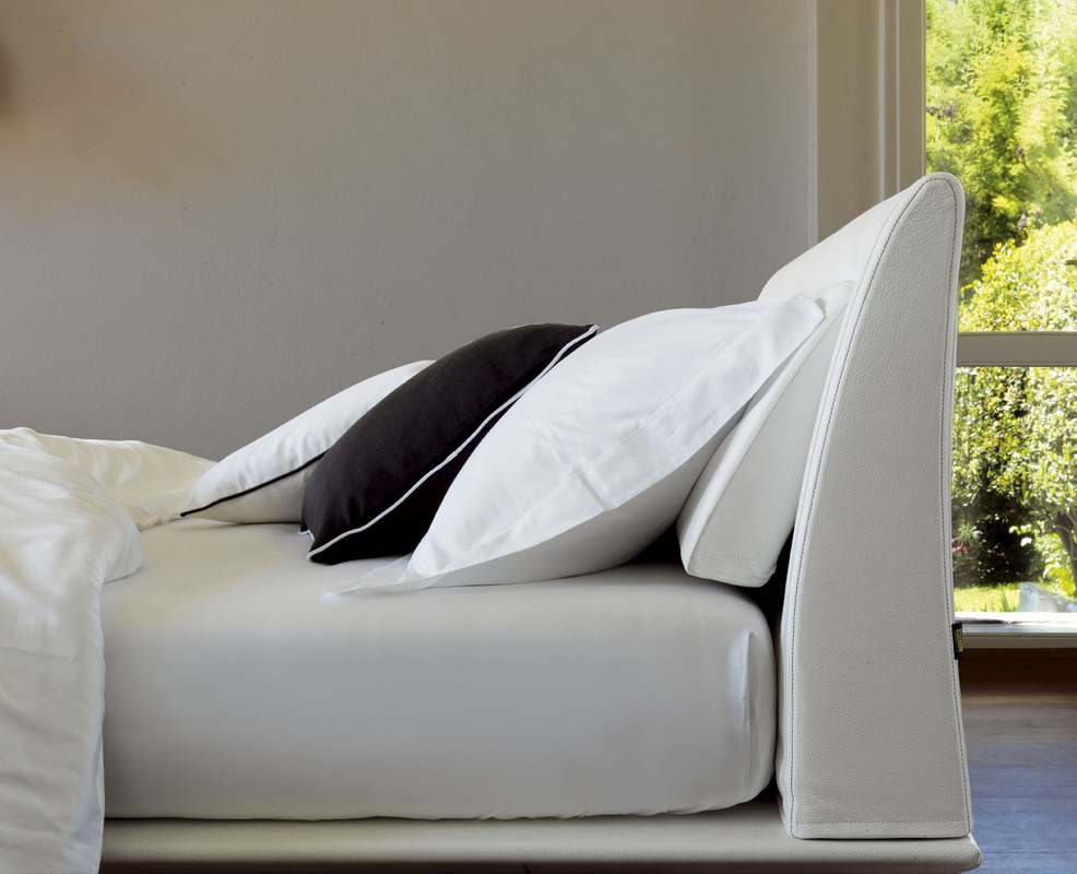 Bed Epiro from the Italian manufacturer Axil. The frame is made from solid wood in the finishing varnish from the range of the campaign. The filler of the head - foam, upholstery - leather. Model with a double cushioned headboard. Great choice for the bedroom in a minimalist style. Product color white.