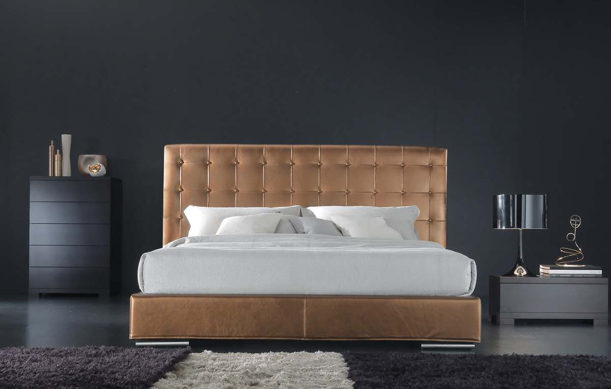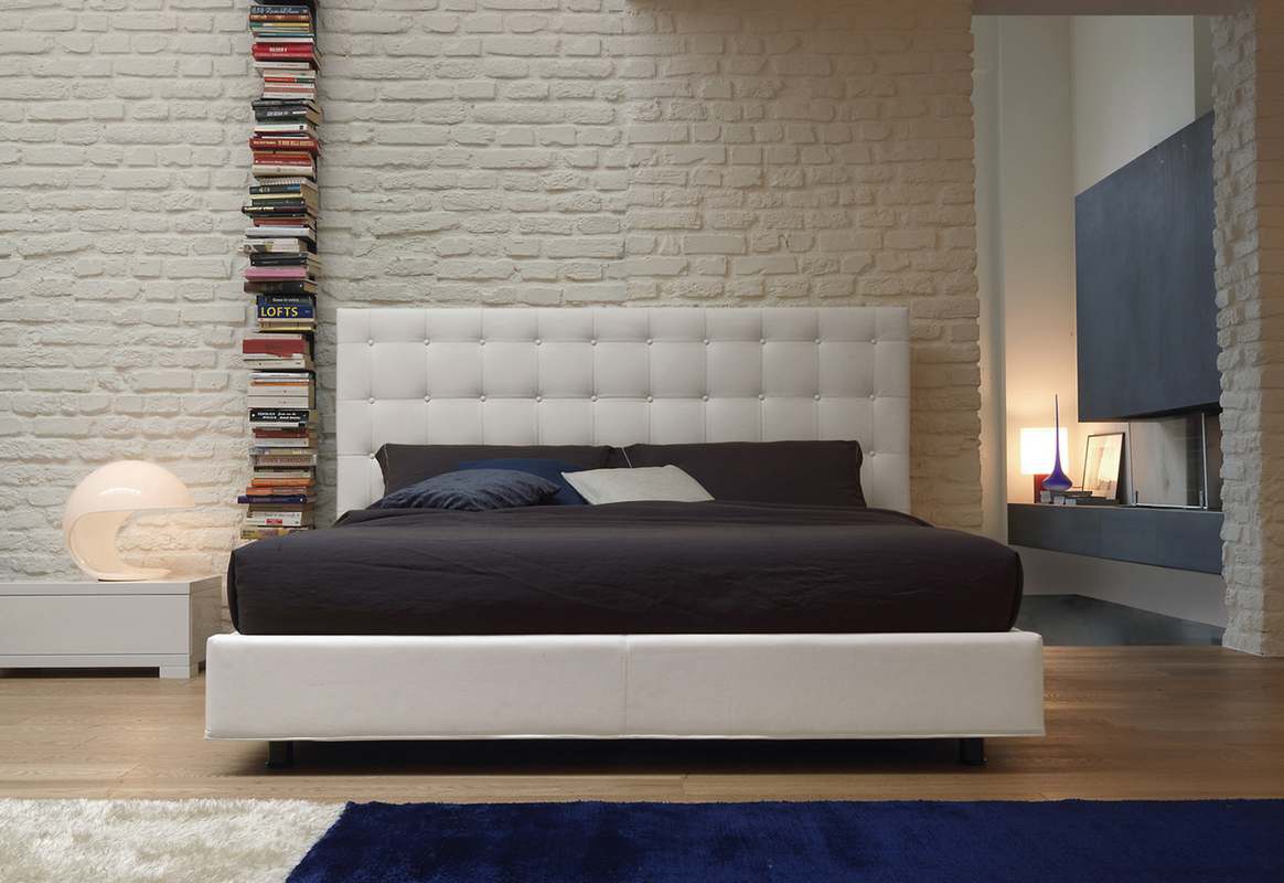 Idra bed from Italian manufacturer Axil. The legs are made of solid wood or metal, upholstery - leather. The model is a double high and a cushioned headboard. A chic choice for the bedroom in modern style. Colors: white, sand.
