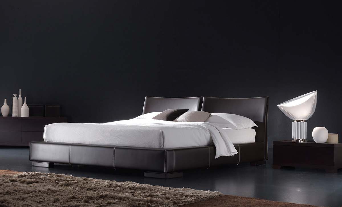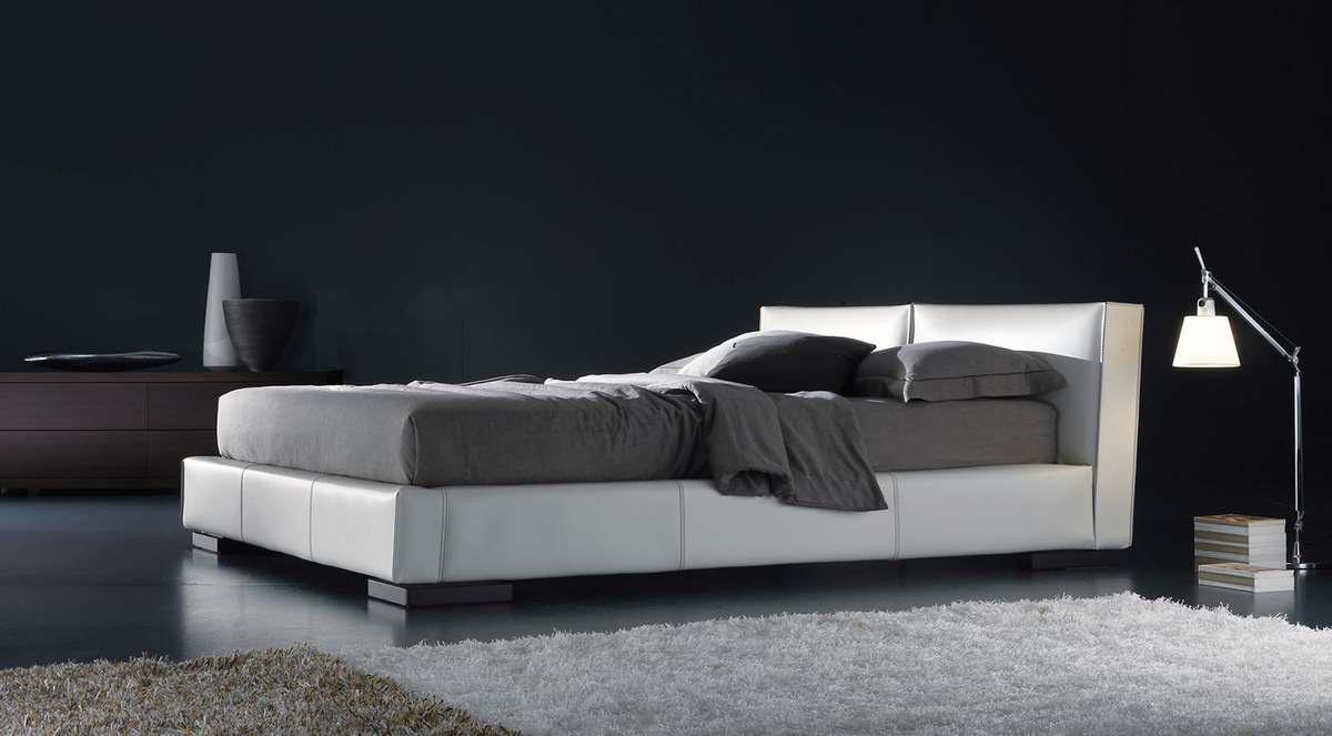 Ilka bed from Italian manufacturer Axil. The legs are made from solid wood, filler - foam, upholstery - leather. Model with a double cushioned headboard. The product is designed for bedroom in a modern style. Colors: white, gray, black.