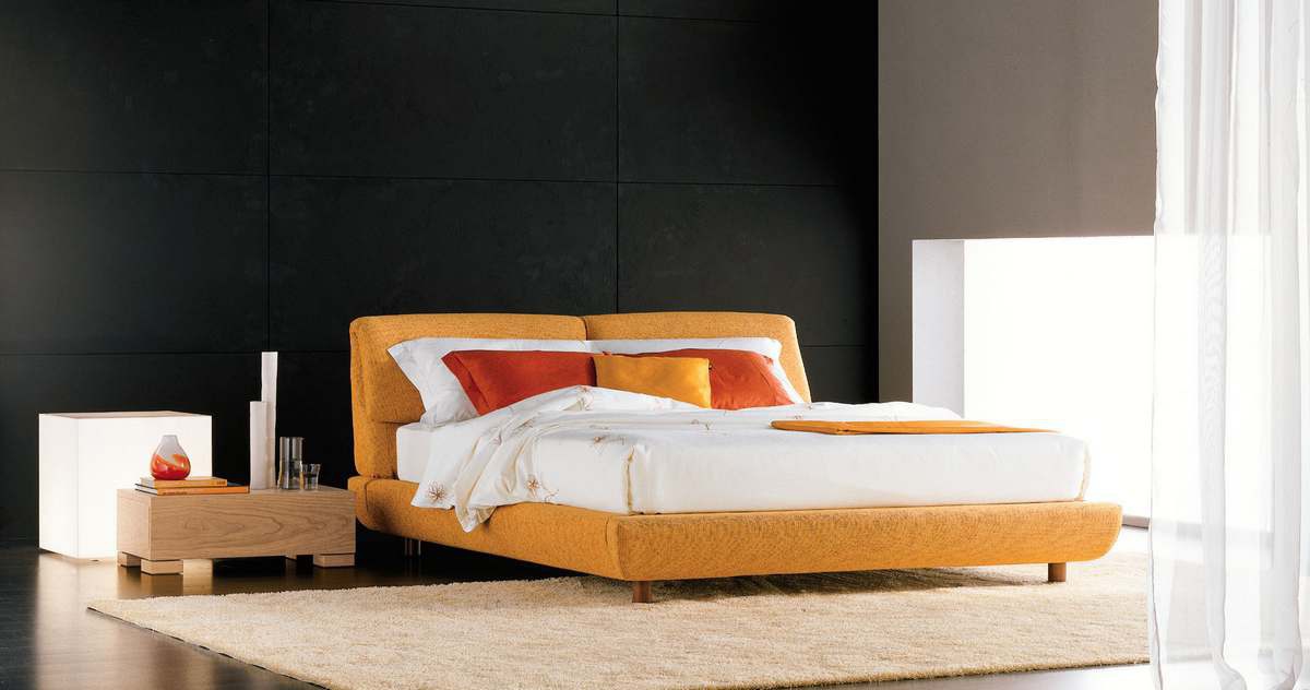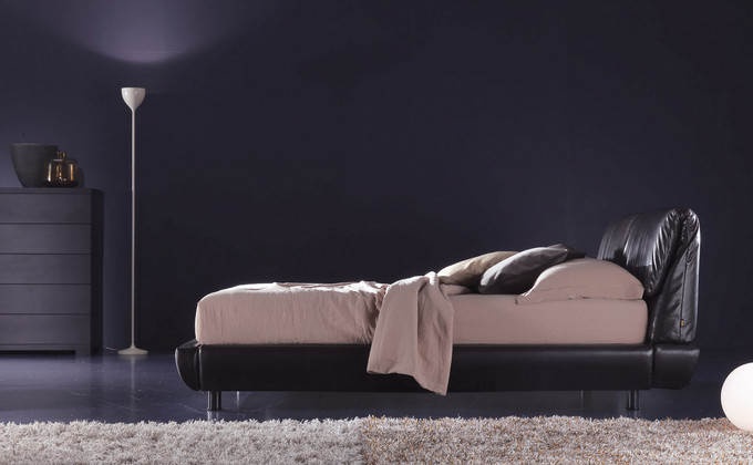 The Itaca bed from Italian manufacturer Axil. The legs are made of metal or solid wood, with headboard filler - foam, upholstery - leather or textiles from a range of campaigns. Model with a double cushioned headboard. A wonderful choice for the bedroom in modern style. Colors: orange, black.