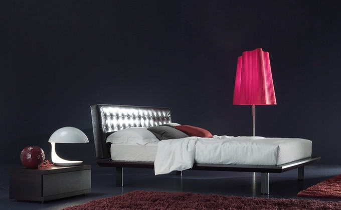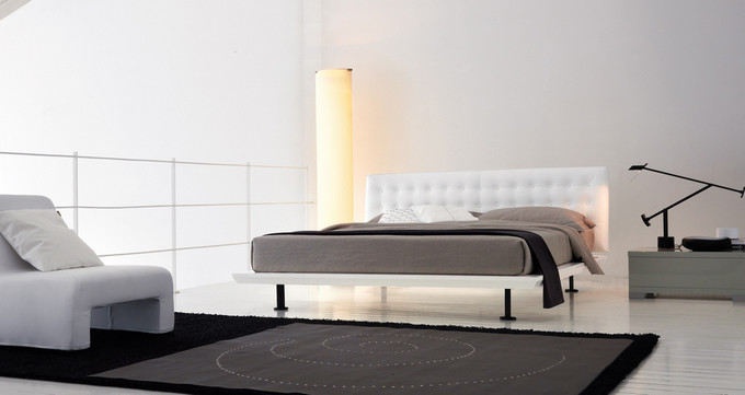 The Kaos bed from Italian manufacturer Axil. The frame is made from solid wood, legs - metal, upholstery headboard - natural leather. The model is a double high and a cushioned headboard. A great choice for the bedroom in a minimalist style. Colors: white, black.
