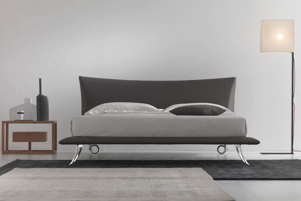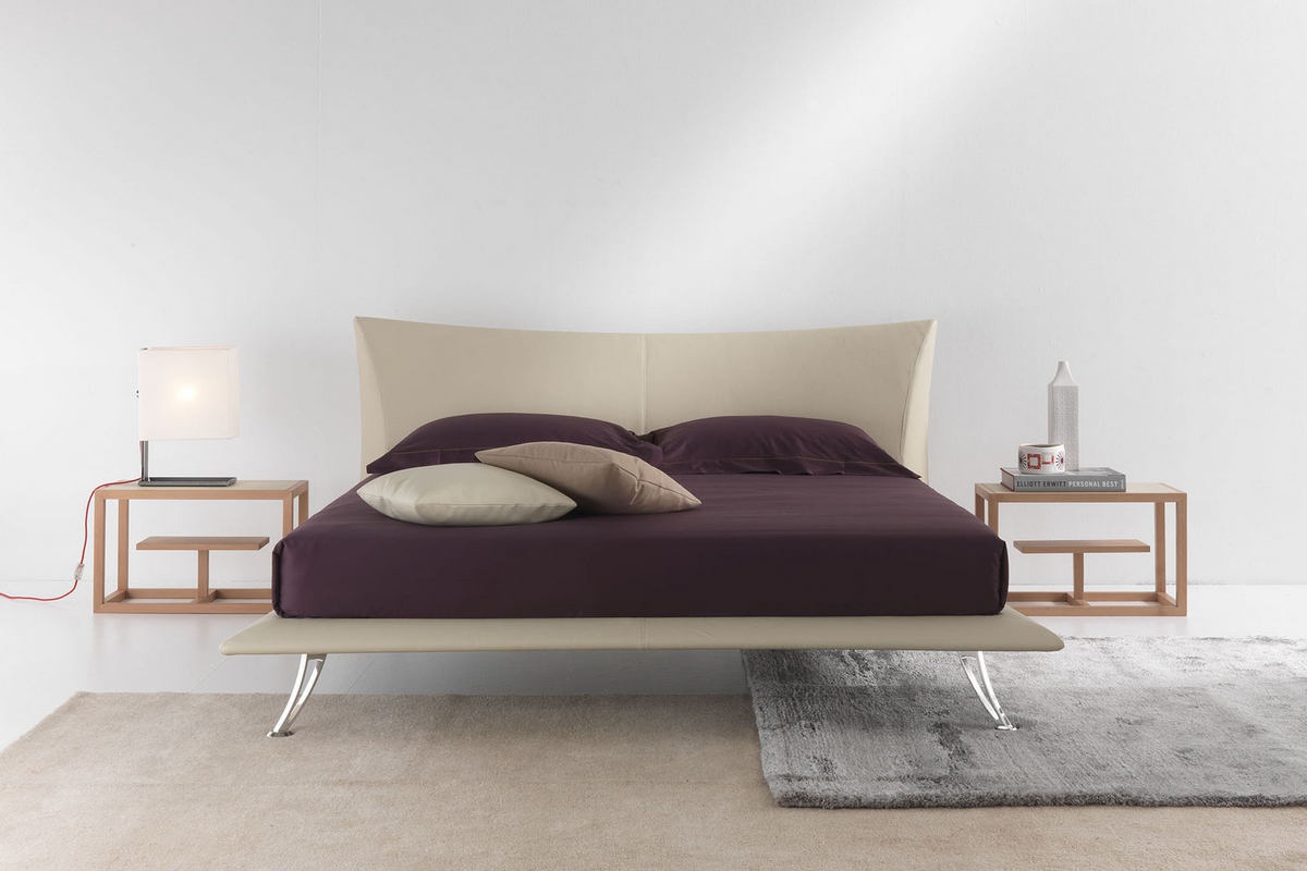 The Leo bed is from Italian manufacturer Axil. The frame is made from solid wood, legs - metal, the filler of the head - foam, upholstery - leather. Rear legs with wheels. The model is a double high and a cushioned headboard. A charming choice for the bedroom in a minimalist style. Colors: white, beige, gray.