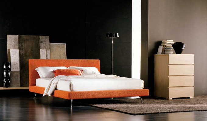Medina bed from Italian manufacturer Axil. The legs are made of metal, the frame is made of solid wood in fabric from the range campaign. Model double bed with high headboard. A great choice for the bedroom in modern style. Colors: white, orange.