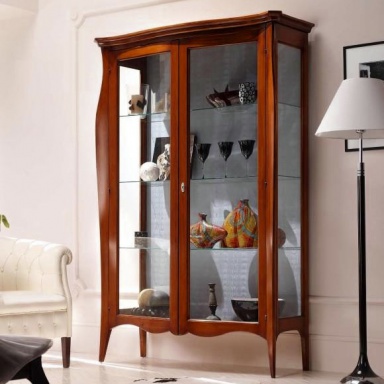 Showcase from Italian manufacturer Domus Mobili. The model is made in classic style. Legs and frame made of solid wood. Finish offered a choice from a range of companies. The sash and the sides glazed. Inside are three shelves of clear glass. Swing doors are locked.
