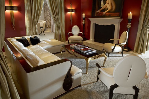 Living room (sofa set) from the American producer Christopher Guy. Set includes: sofa, loveseat, chairs and coffee table. The frames are made of wood. Upholstered in leather from the company portfolio. Colors - white, gold, black.