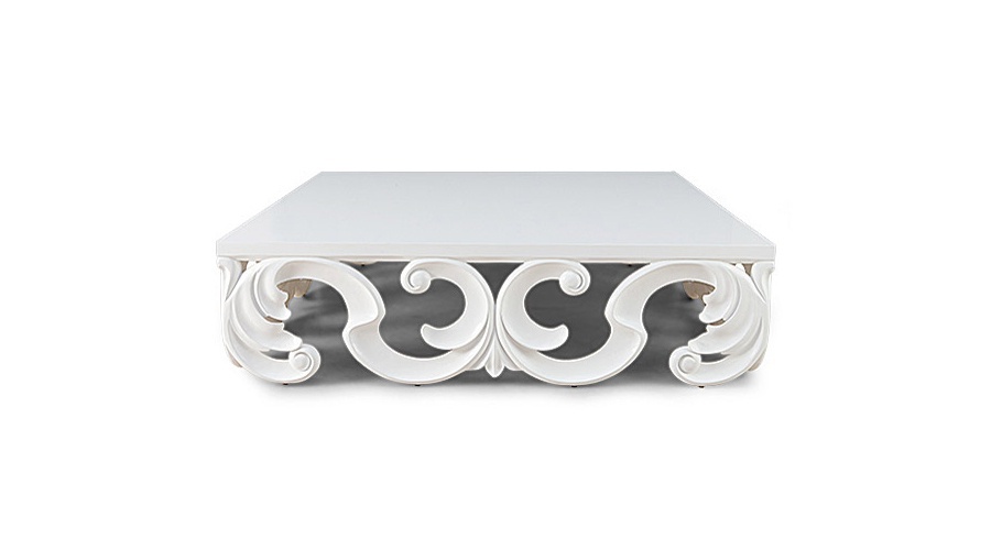 Coffee table, The Acanthus, from the American producer Christopher Guy. The frame is made of wood. Finish - gloss lacquer and carved work. The model is made in modern style.