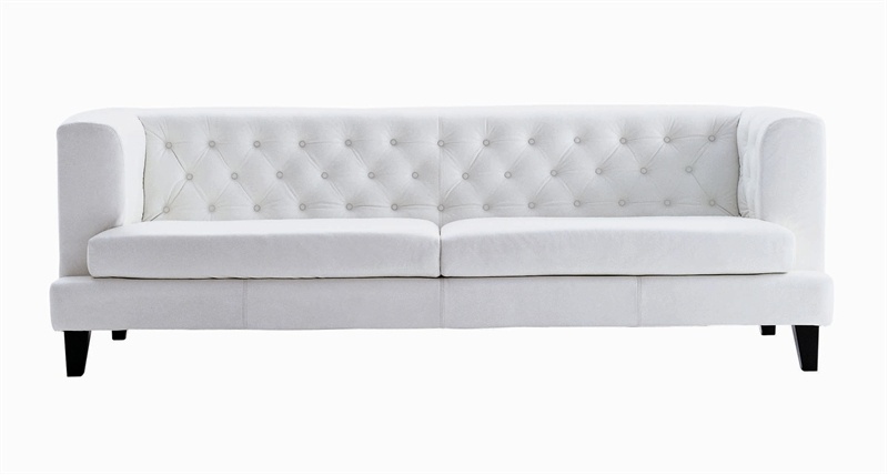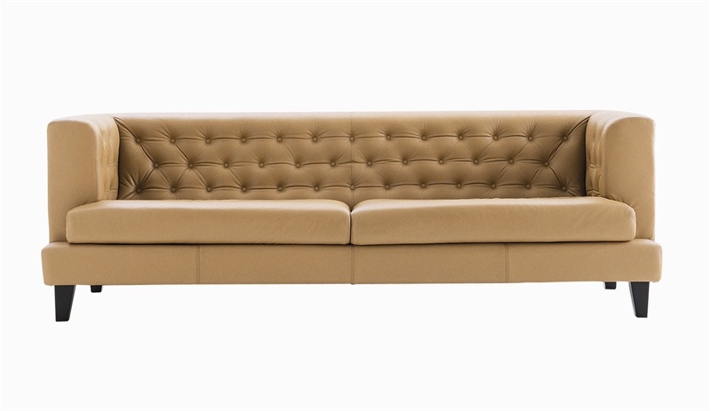 Hall three seater sofa from Italian manufacturer Driade. Model on low legs made of solid wood. The frame is made of wood with a filling of polyurethane foam of varying stiffness. Finish in leather or textile, colors offered a choice of white, black or beige. The backrest and armrests are decorated with a decorative stitch-Capito. Made sofa in contemporary style.