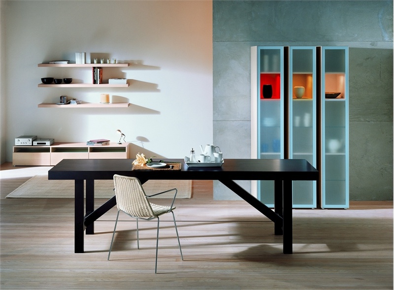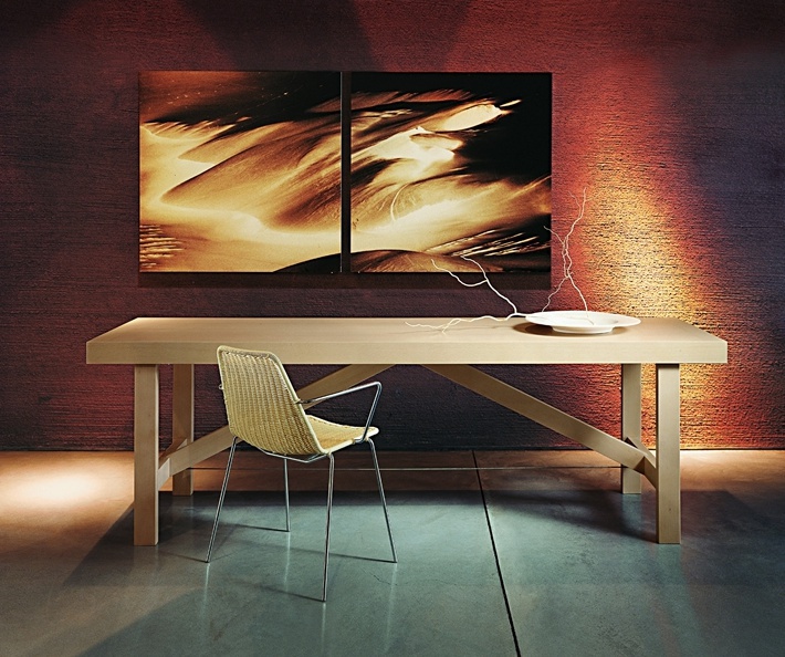 Capriata dining table from Italian manufacturer Horm. The model is made in modern style. The frame and legs made from solid wood. The table top is rectangular. Finish offered a choice from the collection of the company. The table is durable and practical. Perfectly fits and complements any interior.